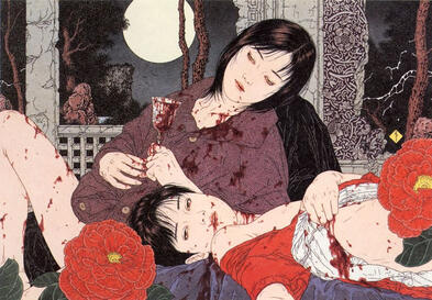 | blood, occasional horror/dark themes in my art |